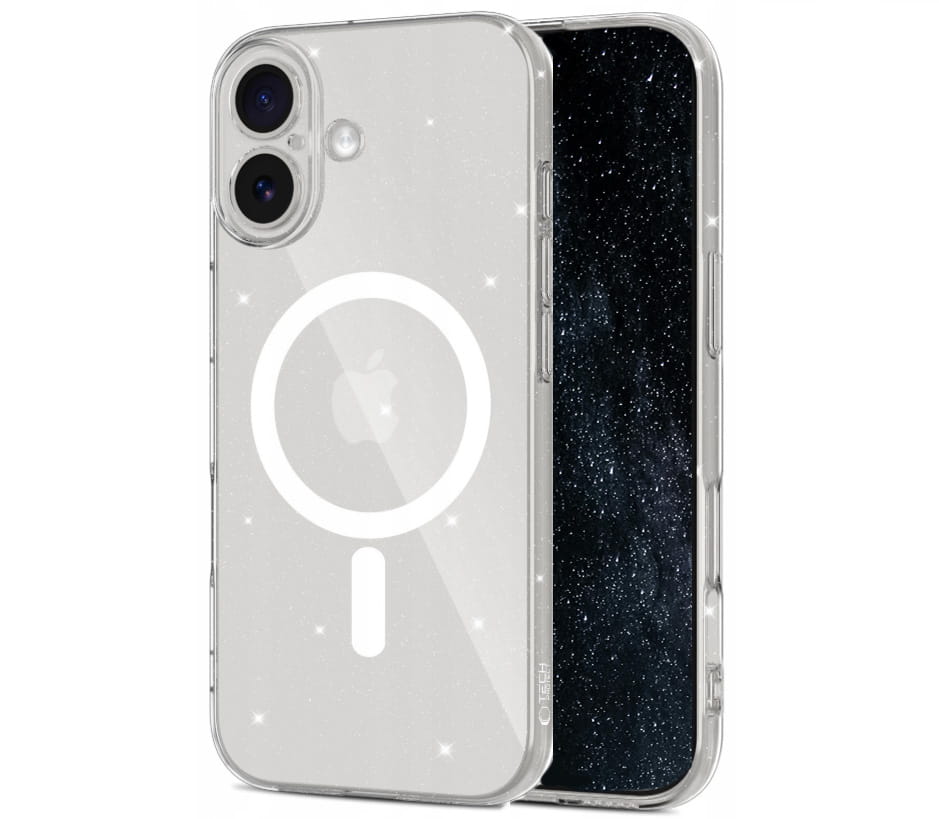Tech-Protect FlexAir MagSafe iPhone 17 Glitter – przezroczyste etui z subtelnym brokatem i magnetycznym pierścieniem MagSafe. Chroni, błyszczy i podkreśla design Twojego iPhone’a, nie zwiększając jego gabarytów.